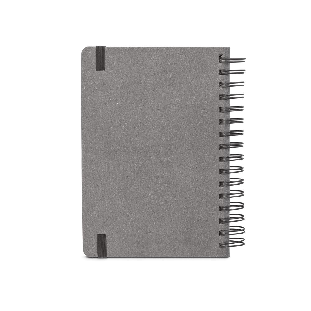 Agenda A5, com argolas, em pele (58% reciclada). Possui um elástico para fecho da agenda. Está organizada num plano diário. 148 x 210 mm