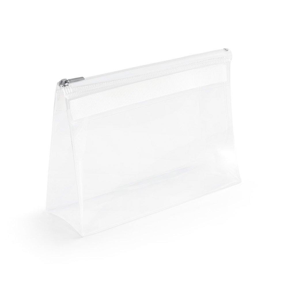Bolsa de cosméticos em EVA com fecho de correr e puxador metálico. Apropriado para viagem de avião