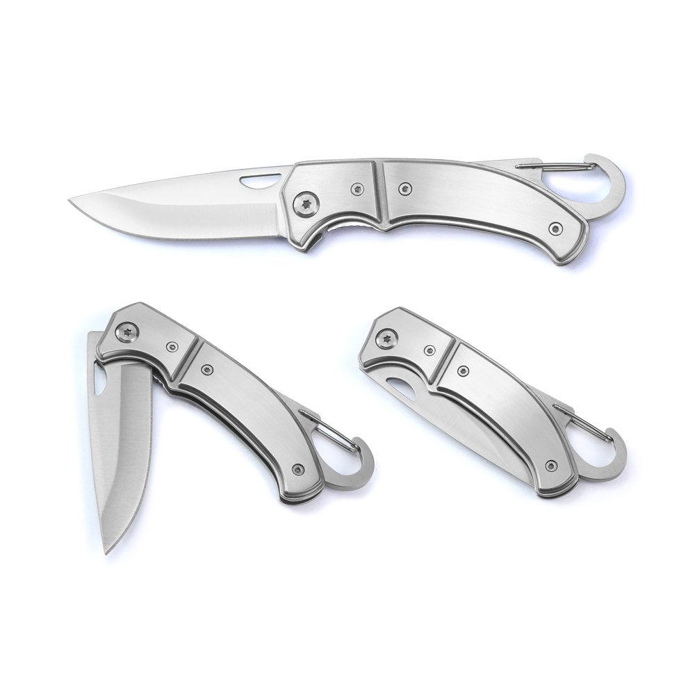 Canivete em aço inox e metal com fecho de segurança