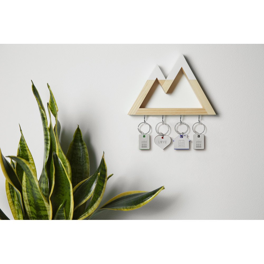 Chaveiro em formato de casa em metal e ABS. Fornecido em bolsa presente de papel kraft reciclado. 42 x 37 x 4 mm