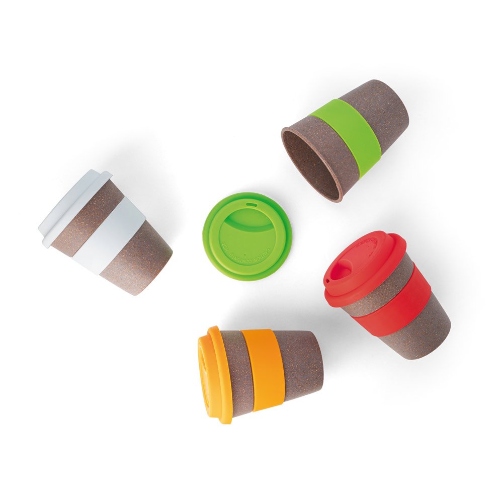 Copo de viagem em fibra de bambu e PP com tampa e tira em silicone. Capacidade até 390 mL. Certificação EU Food Grade. Retirar tampa antes de colocar no micro-ondas