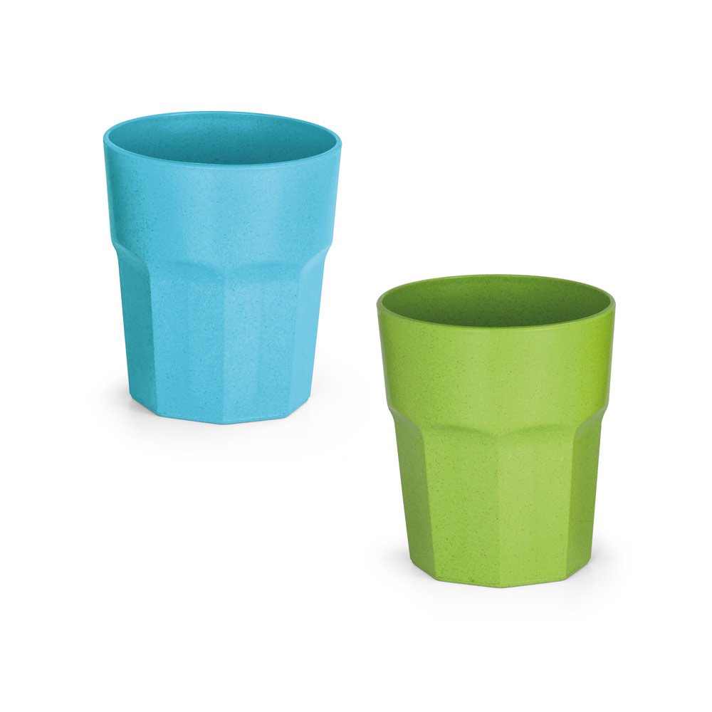 Copo em fibra de arroz (50%) e PP (50%) com acabamento matt. Capacidade até 400 mL. Certificação EU Food Grade