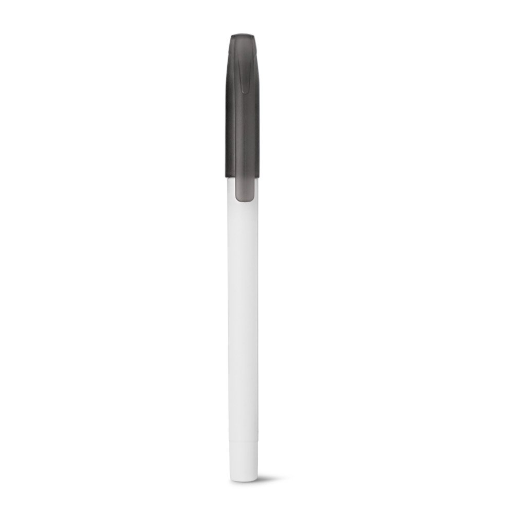 Esferográfica em PP com acabamento matt no corpo e frost na ponteira e tampa. Até 1,5 km de escrita