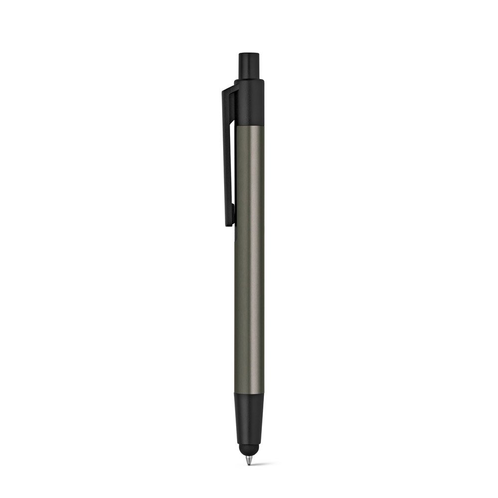 Esferográfica em alumínio com ponteira touch. Escrita em preto até 2 km