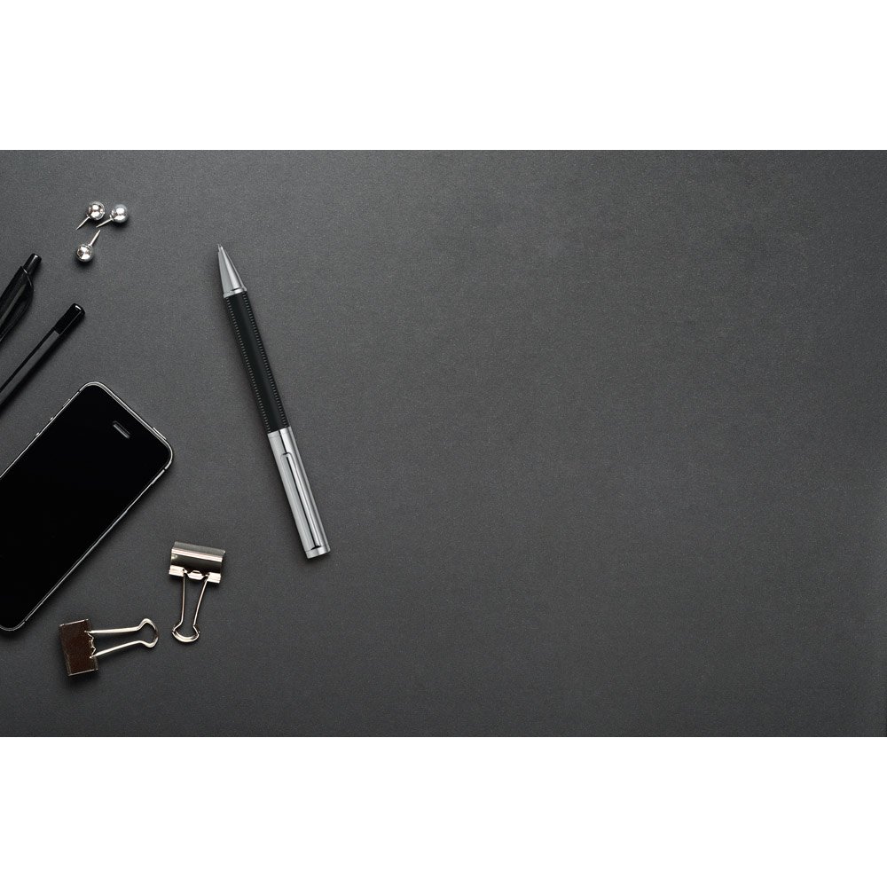 Esferográfica em metal com escrita em preto
