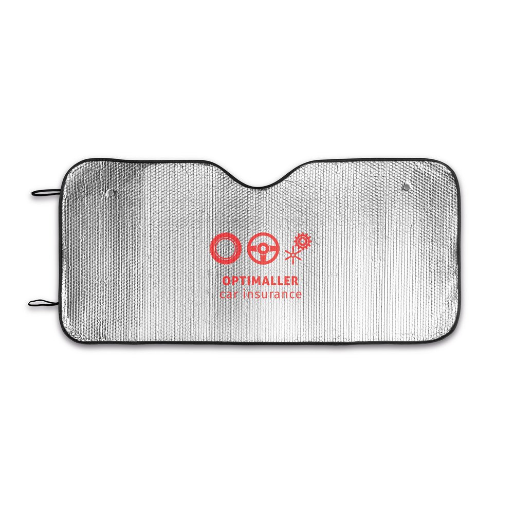 Protetor solar para carro em espuma PE e forrado com folha de alumínio na frente e verso. Adequado para vidro frontal e incluso 2 fixadores de ventosa. Dobrável para facilitar arrumação