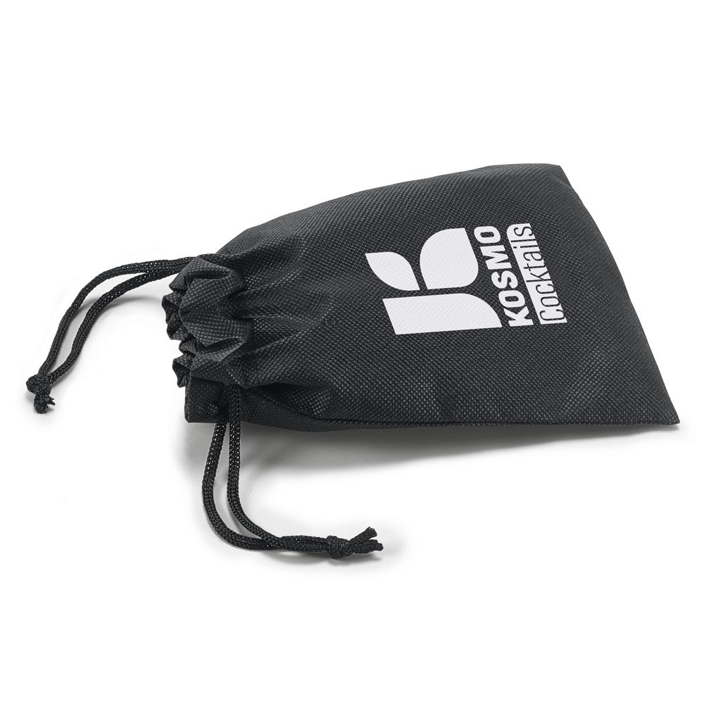 Set de coquetel com 6 peças em aço inox: um shaker (600 + 450 mL), um copo dosador (30 mL), uma colher, um pilão e um coador. Inclusa uma bolsa em non-woven. Fornecido em caixa presente. Certificação EU Food Grade
