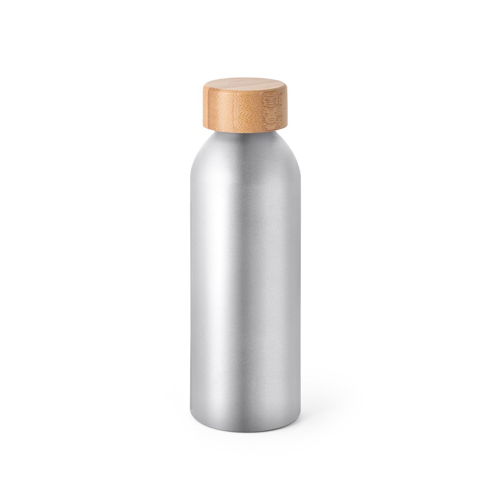 Squeeze em alumínio com acabamento mate e tampa em bambu. Capacidade até 550 mL. Caixa branca 94656 vendida opcionalmente. Certificação EU Food Grade. A cor e o resultado da impressão nos materiais naturais pode variar entre produtos